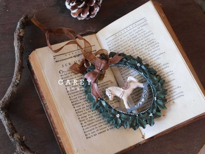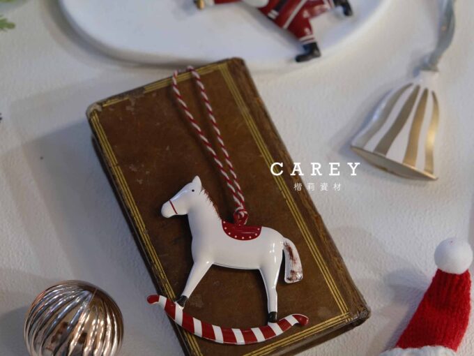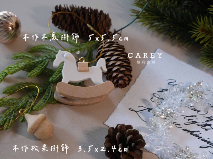 木製木馬 松果 聖誕掛飾