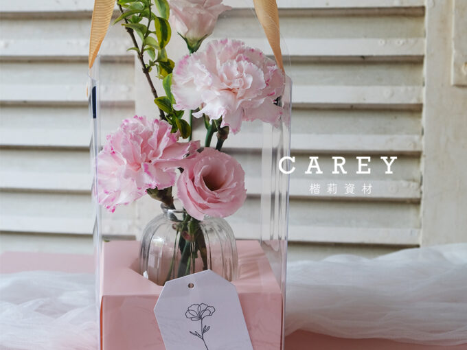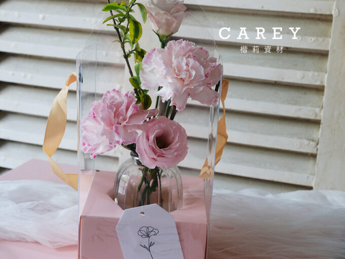 獨家訂製~單支花紅色透明提袋花束提袋*10入