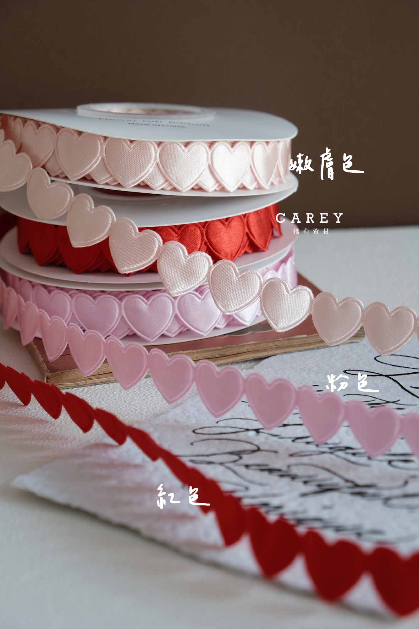 規格:愛心本身1.5cm左右、整卷緞帶總長度10m