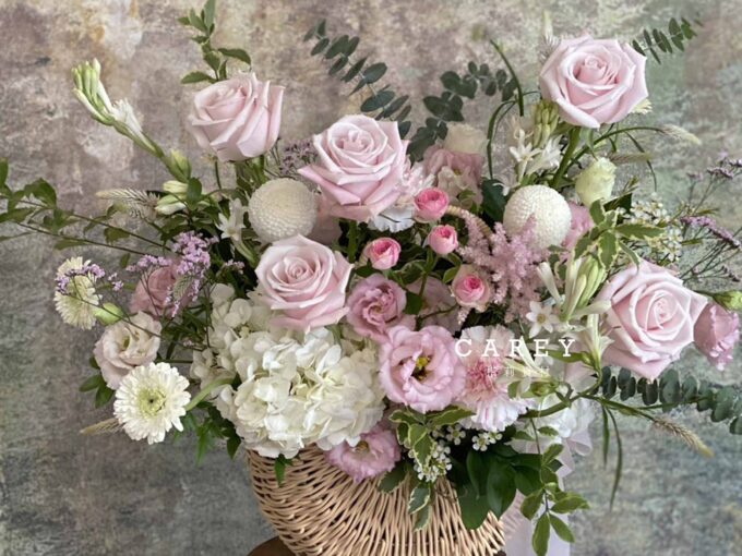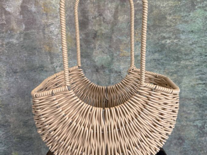 韓系雙提把淺色防水半月花藝藤籃花籃