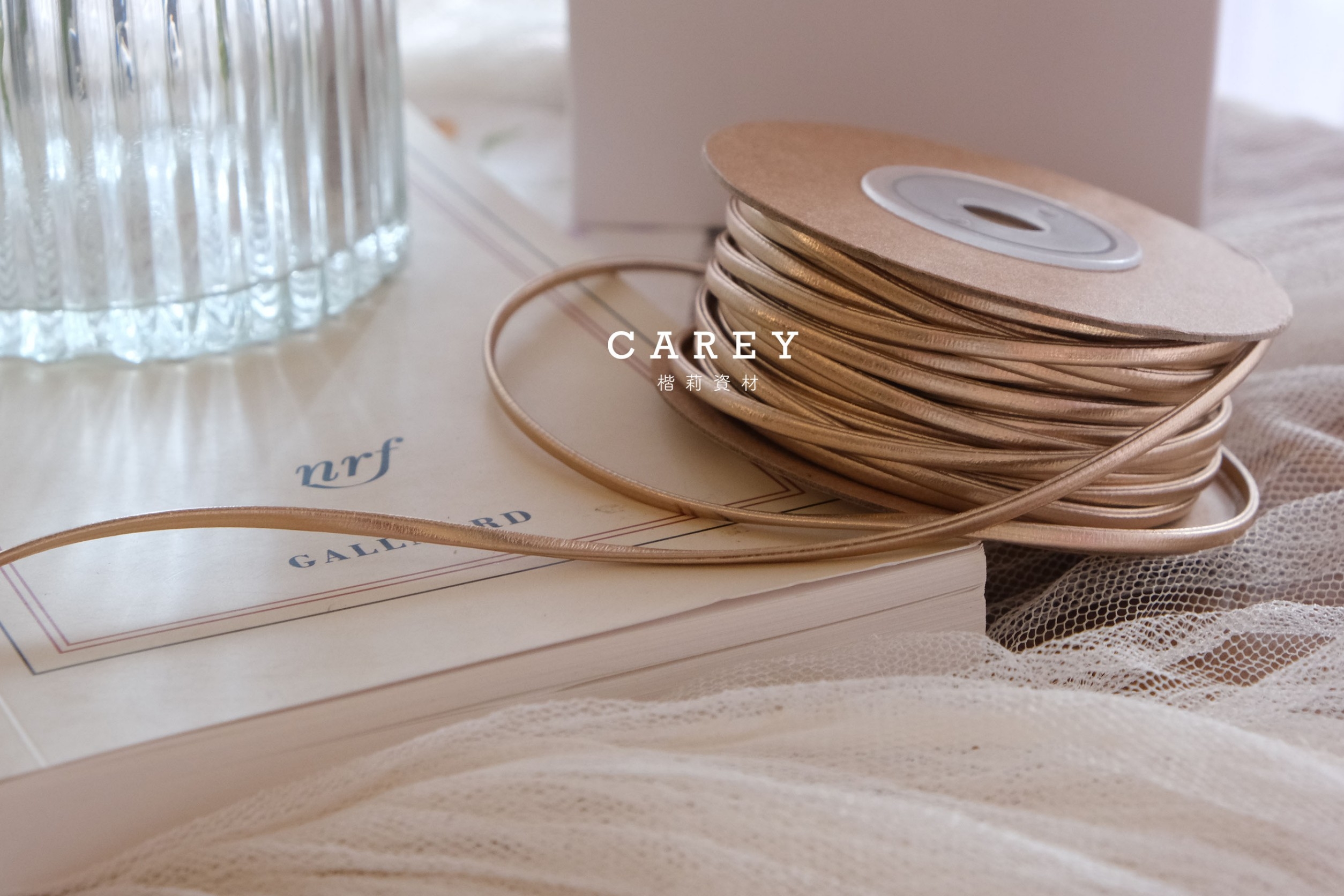 0.2cm仿皮革古銅金細扁花藝禮品緞帶